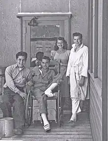 His transfers from ship to ship on the turbulent seas were accomplished by heavy cable anchored on each ship. His stretcher was attached to the cables and he was pulled over the water. Finally arriving in Hawaii, Gritts was able to call home just as the news of the Franklin disaster was announced, after a long period of censorship. In Hawaii, he received his first extensive medical treatment, which revealed that an infection had set in the tibia bone of his left leg, and he had lost a toe on that foot. After a couple of weeks, he set sail again, this time on a hospital ship headed for Oakland, where he was transferred to a hospital train for Farragut, Idaho, the training camp which had been turned into a hospital. He was a patient in this hospital for more than a year, during which time the war ended.