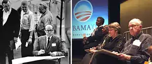 Franklin McMahon drawing in an International Harvester plant circa 1970 and at an Obama '08 victory rally.