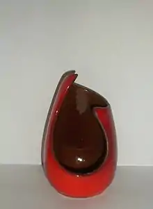 The company was closed for six weeks and then sold again during the summer of 2008, reopening on August 18 under new owner Joe Ragosta. Ragosta planned to bring back all the employees and continue the Frankoma line of pottery.[6] The year 2008 marked the company's 75-year anniversary.[1] The company closed in 2010 and was auctioned on May 18, 2011. Over a thousand pieces of pottery plus showroom fixtures and equipment were sold. The 1,800 original molds and the Frankoma name were not included in the sale, nor was the real estate.[7][8] In August 2012, the factory building was sold to a non-pottery manufacturer and the original Frankoma molds and trademark name were sold to FPC LLC. As of April 2020, pottery continued to be made[9] but in lower volume, focused on artware.