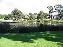 In 1879, following a conference of city councils in inner-Melbourne, the Frankston area was chosen as the preferred site to replace the Melbourne General Cemetery.[71] The roughly 3000 acre Crown land site was bordered to the north by Charles Wedge's Banyan sheep station (over what are now the City of Frankston suburbs of Carrum Downs and Seaford),[47][48] to the south by Frank Liardet's Ballam Park estate (in what is now the Frankston locality of Karingal),[20][72] and is now the suburb of Frankston North. Its south-west corner is described as being "about a mile [1.6 km] north of the village of Frankston, and the same distance east of the beach".[72]