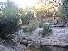 At the beginning of World War I the Langwarrin Military Camp near Frankston was used to detain around 500 German prisoners of war.[100][120] A military hospital was later established at the camp in order to treat Australian soldiers returning with venereal disease from Egypt and France.[100][121] Most of the prisoners of war were later transferred to Holsworthy Barracks in Sydney in 1915, however, some also stayed to work at the hospital and settled in Frankston upon their release.[120] Between 1915 and 1916 research at the hospital halved the duration of venereal disease treatment and its cost.[121] It also advanced the burgeoning field of occupational therapy in Australia by involving its patients in gardening and music.[121] It became a state-of-the-art rehabilitation hospital, during this time—and also had pet animals, landscaped gardens and shrubbery, art and musical equipment as well as a band for its patients.[121] The hospital closed in 1919, with the base eventually following in the 1970s.[120] It is now the Langwarrin Flora and Fauna Reserve.[100] The ruins of the hospital's fountain can still be found in the reserve.[100]