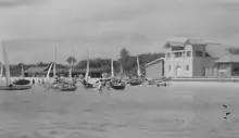 Frankston's fishing industry was further developed with the assistance of Thomas McComb, who funded the construction of Frankston Pier in 1857.[3][46][64] Following a petition by residents, to the Victorian colonial Department of Public Works, the pier was extended into deeper water in 1863.[46][64] A gaslamp was installed at the end of the pier and a lamplighter was also employed.[46] Frankston Fish Company was founded in 1867, by a consortium of local businessmen including Thomas Ritchie,[65] in order to transport the catches of local fishermen in bulk to the fish markets of the Melbourne city centre.[46]