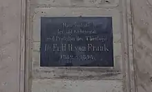 Plaque commemorating Franz Hermann Reinhold Frank at Hauptstraße 13 in Erlangen.