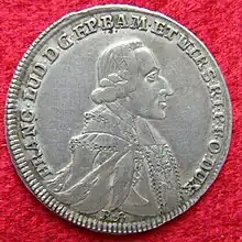 Franz Ludwig Freiherr von Erthal (16 September 1730 in Lohr am Main - 14 February 1795 in Würzburg) was the prince-bishop of Würzburg and Bamberg from 1779 until his death. He was buried at the Würzburg Cathedral (#45 diagram).