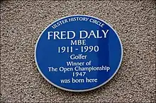 Frederick J. Daly, MBE (11 October 1911 – 18 November 1990) was a Northern Irish professional golfer, best known for winning The Open Championship in 1947 at the Royal Liverpool Golf Club, Hoylake. Born in Portrush, County Antrim, he was the first Irishman from either side of the border to win the Open and the first to play in the Ryder Cup. He remained the only Irish winner of the Open until Pádraig Harrington won it in 2007 and the only Northern Irish major winner until Graeme McDowell won the U.S. Open in 2010.