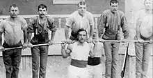 It was thought that the officer who would be in charge of overseeing the new fitness training should undergo the same training as his men.[6] As a result, he and twelve carefully selected non-commissioned officers (NCOs), chosen for their unexceptional physical stature[6] (who later became known as the Twelve Apostles),[7] were put through a twelve month course of physical training at the University of Oxford under the PT specialist and educator Archibald MacLaren (1820–1884) who had trained in Europe and who in 1858 had opened a renowned gymnasium in Oxford where he taught fencing and gymnastics.[8][9] On completing the course it was apparent that each man's physical fitness had considerably improved and they became the foundation of what was to be called the Army Gymnastic Staff (AGS).[10] Today this is the Royal Army Physical Training Corps.