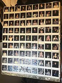 At about the same time he became a participant in the AIDS Adult Day Health Care Program, Weston took an off-the-books nighttime job in a Midtown gay bar called Trix.[10] Weston mounted large panels on the walls of the coat-check cubicle where he worked with Polaroid images that he had taken of young gay men he had met at Trix whom he had dressed in second-hand clothing he had accumulated and assembled into outfits.[5] Weston later described Trix customers as "a fabulous mix of high and low and the best drag queens you ever saw".[11] Out of this collection of photographs he created what has been called his first solo exhibition.[4][6] In 1996, Trix relocated to another block in the midtown theater-district and changed its name to Stella's.[10] Continuing to run the coat-check operation there, Weston produced what has been called his second solo show. Called "Night Blooming Flowers", it was a selection from the display he exhibited at Trix.[11] An installation photo of this assemblage appears at left.