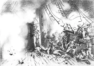 ![]() Kien Chan under fire in the events that would lead to the Bombardment of Shimonoseki. | |