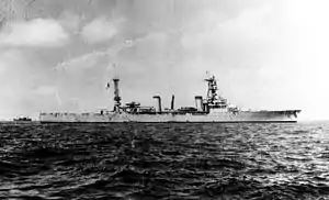 On 25 January 1940 she sailed to Dakar as part of Force Y[13] for employment on sweeps of the Atlantic searching for enemy merchantmen and merchant raiders.[14] On 11 April Force Y departed Dakar.[15] On 4 May 1940 as the Flagship of Vice Admiral Godfroy she arrived at Alexandria and took command of Force X.[16][17] On 22 June she was preparing to sail with the cruisers Duguay-Trouin and Suffern for a bombardment mission on Augustus, Sicily and a raid off the Straits of Messina when official notification of the French Armistice with Germany was delivered. Their departure was cancelled and the French ships were barred from departing the harbour after 23 June. On 3 July Vice-Admiral Andrew Cunningham presented Admiral Godfrey the ultimatum - surrender the ships to British control, demilitarize the ships at their moorings or scuttle. The Admirals signed an agreement on 7 July to demilitarize the vessels.[18]