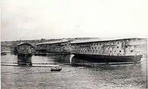 The Hector-class ships were enlarged versions of the 80-gun Bucentaure-class ships of the line that had been designed by naval architect Jacques-Noël Sané. The conversion to steam power involved cutting the ship's frame in half amidships and building a new section to house the propulsion machinery and coal bunkers, which reduced her armament to 90 guns. Eylau had a length at the waterline of 68.72 meters (225 ft 6 in), a beam of 16.8 meters (55 ft 1 in) and a depth of hold of 8.07 meters (26 ft 6 in). The ship displaced 5,023 metric tons (4,944 long tons) and had a draught of 8.16 meters (26 ft 9 in) at deep load. Her crew numbered 913 officers and ratings. Details are lacking on Eylau's propulsion machinery, the only information available is that her two steam engines were rated at 900 nominal horsepower[1] and produced 3,600 metric horsepower (2,600 kW).[2]