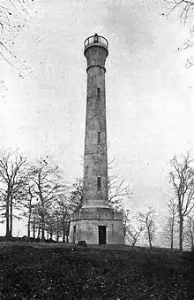 The tower was originally constructed to be 85 feet (26 m) tall, and an additional 20 feet (6.1 m) was added to the tower in 1949. It was constructed atop an 18-foot (5.5 m) rise on the island, making the current total focal height of the lighthouse 123 feet (37 m) above lake level. Light from the tower is visible from up to 20 miles (32 km) away.[9][10]