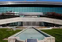 There is a large fountain in the center of the dual stairways leading up to the main public entrance. The fountain was initially eliminated from the project due to budgetary concerns, but the Cobb family, early settlers of the Fresno area who opened successful businesses, donated $100,000 for the fountain. Other donors also contributed to keep the fountain as part of the project.[1]