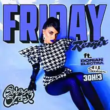 On February 8, 2021, Rebecca Black teased a 10-year anniversary remix of "Friday" featuring "some iconic people" on Twitter.[100] The remix was released on February 10, 2021, and features vocals from crunkcore duo 3OH!3, New Orleans's "queen of bounce" Big Freedia, and alt-pop musician Dorian Electra, alongside production from Dylan Brady of 100 gecs.[101][102][103] Of her choice of collaborators for the remix, Black explained: "I’d had the idea to do this remix of 'Friday' for years leading up to now, but honestly it was also mildly insane for me to think anyone else would want to be a part of it".[101]