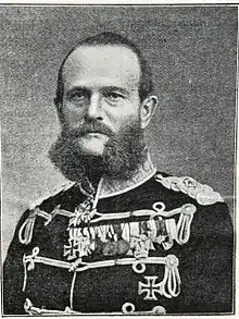 In May 1846 Rauch became a second lieutenant and worked from January 1851 as a regimental adjutant. In this position he was promoted to Rittmeister until the end of May 1859. Otto von Bismarck, then a Prussian envoy to St. Petersburg, wrote about him: "The young Rauch is an officer of the kind I always regard as a reserve of diplomacy: his father's calm mind and good manners." Rauch received command of the 1st Squadron in Perleberg and occupied Flensburg with his Uhlans in 1864 in the war against Denmark.[3] He confiscated a number of Danish merchant ships with his soldiers in the harbor, which prompted King Wilhelm I to comment on the entry of Prussian troops into Berlin: "Look at the man who has conquered more ships than the entire Prussian fleet." For his achievements, Rauch received the Order of the Red Eagle, 4th class.[4]