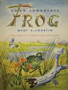 Frog Went A-Courtin' is a book by John Langstaff and illustrated by Feodor Rojankovsky. Released by Harcourt, it was the recipient of the Caldecott Medal for illustration in 1956.[1] It is based on the folk song "Frog Went A-Courting." In 1961, Weston Woods Studios made an iconographic version of the story produced and directed by Morton Schindel, narrated by the author with music by Arthur Kleiner, culminating in a sing-along, sung by the story's narrator. In 2007, the film has been remade with narration and music by Jack Sundrud and Rusty Young.