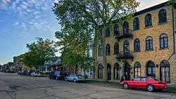 The Front Street (River Park Drive) Historic District is a nationally recognized historic district located in Guttenberg, Iowa, United States. It was listed on the National Register of Historic Places in 1984, and in 2004 its boundaries increased to include buildings that did not front onto River Park Drive. At the time of its nomination the district consisted of 75 resources, including 57 contributing buildings, one contributing site, and 17 noncontributing buildings. The boundary increase added 19 resources, including 15 contributing buildings, one contributing site, and 3 noncontributing buildings.[2] The 4½ block segment of South River Park Drive, originally called Front Street, that makes up the district is the commercial center of Guttenberg. The buildings line the west side of the street facing a park, a contributing site, and the Mississippi River across the street. The National Fish Hatchery and Aquarium complex (1939-1940), whose buildings contribute to the historic nature of the district, is also located on the east side of the street.