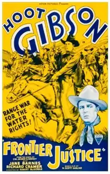 Frontier Justice is a 1935 black-and-white Western film directed by Robert F. McGowan starring Hoot Gibson based on the novel by Colonel George Brydges Rodney.[2] Produced for Walter Futter's Diversion Pictures, it was rereleased by Grand National Pictures in 1937 and later reissued by Astor Pictures in the 1940s.[3]
