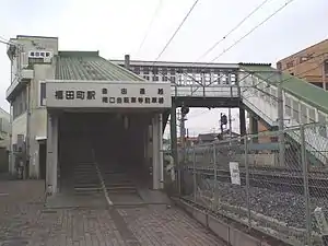 Fukudamachi Station is served by the Senseki Line. It is located 7.7 rail kilometers from the terminus of the Senseki Line at Aoba-dōri.