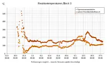 In August, TEPCO began considering changing the core injection method for the no. 3 reactor as it required a much larger quantity of water to cool and the temperatures remained relatively high compared to the nos. 1 and 2 reactors which required far less water. TEPCO has hypothesized that this may be because some fuel is still present above the core support plate inside the pressure vessel of the no. 3 reactor in addition to the fuel that has fallen to the bottom of the pressure vessel. The fuel on the bottom would be easily cooled by the existing method, but as the pressure vessel is leaking, any fuel located on the support plate was likely only being cooled due to the steam generated by the cooling of the melted fuel at the bottom. TEPCO began considering utilizing the reactor's core spray system pipes as an additional path of water injection and then reduce the amount of water through the existing feedwater piping system. A team of workers were sent inside the reactor building to inspect the core spray system pipes, and it was found that the piping was undamaged. Hoses were then run from the temporary injection pumps located outside the building and connected to the core spray system piping. On 1 September, TEPCO began injecting water using the new route. The new injection method has been considerably more effective in lowering the temperature of the reactor to below 100 degrees Celsius. As of 27 September, most of the no. 3 reactor's temperature readings are between 70 and 80 degrees Celsius. Later, TEPCO began utilizing the same method in the no. 2 reactor; it has not had as significant effect on the no. 2 reactor as it did on the no. 3.[79]