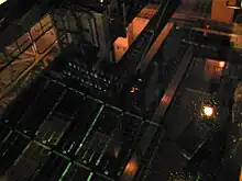 At the time of the earthquake, Unit 4 had been shut down for shroud replacement and refueling since 29 November 2010.[1][2] All 548 fuel assemblies had been transferred in December 2010 from the reactor to the spent fuel pool on an upper floor of the reactor building[3] where they were held in racks containing boron to damp down any nuclear reaction.[4] The pool is used to store rods for some time after removal from the reactor and contains 1,331 rods.[5] Recently active fuel rods produce more decay heat than older ones.[6] At 4 pm JST on Monday 14 March, water in the pool had reached a temperature of 84 °C compared to a normal value of 40–50 °C.[4] The IAEA was advised that the temperature value remained 84 °C at 7 pm JST on 15 March.[7][8] The temperature in the pool remained relatively constant until 30 July, when a closed circuit cooling system was commissioned. On 11 April, a fire broke out at Unit 4.