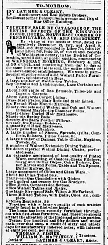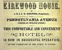 - ↑ "For Sale: The Kirkwood House". National Republican. 1874-03-17. p. 1. Retrieved 2023-07-01.
