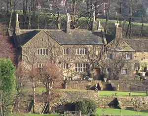 The hall is typical architecturally of many large yeoman farmers houses in South Yorkshire with well proportioned mullioned windows with diamond-shaped leaded lights. The hall faces south-west away from the road and takes in the extensive view across the Mayfield valley towards the Peak District. It is built in the shape of a letter L from course squared locally quarried stone with ashlars dressings. The 1620 datestone is above the front door, the outbuildings run at a right angle to the main house and include a carriage house. The interior features two ground floor rooms with fielded panelling with a Tudor arched stone doorway and a stone fireplace with moulded lintel.[4]