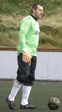 Géza Turi (born 11 March 1974, in Budapest) is a Hungarian football player who currently plays for KÍ Klaksvík.[1] Whilst at Hungarian side ZTE he played against Manchester United at Old Trafford in a UEFA Champions League qualifier. He came on as a substitute after Saša Ilić was sent off for a foul on Ruud van Nistelrooy.[2] He came to the Faroe Islands to be a goalkeeper for GÍ Gøta, which merged with LÍF Leirvík in 2009 into the new club Víkingur. Géza Turi has been the goal keeper for Víkingur Gøta and the former GÍ Gøta since 2006. He has earlier been a goalkeeper for various football clubs in Hungary.