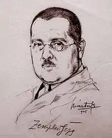 Géza Zemplén was born in Trencsén, the son of János Zemplén and Janka Vittlin, both Roman Catholics. After having completed his secondary education in Fiume, he enrolled in the Eötvös College Budapest in 1900. During his studies he produced two prize-winning works in the sciences. In 1904 he obtained a Ph.D. (doctor rerum naturalium). After having completed his probationary year of teaching, he became a certificated teacher. He then joined the faculty of the College of Mining and Forestry in Selmecbánya in 1905. One year later he was promoted to the post of adjunct professor. He married Margit Heinrich Johanna Friderika (the Roman Catholic daughter of János Heinrich and Emilia Turnovszky) in 1907 in Budapest.[1] However, they were divorced in 1920.[2]