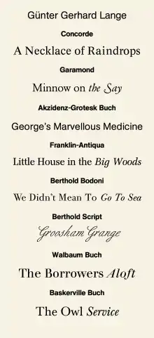 - Walbaum (re-cut) (1975, 1976, 1978, 1979)
