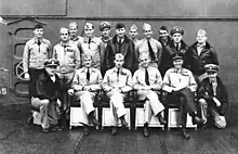 Pilots aboard the USS Leyte, 1950. Wearing 55-J-14 jackets.