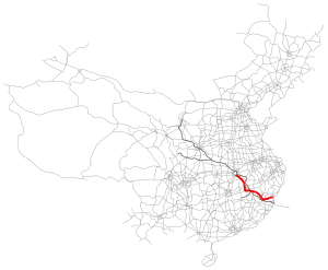 The expressway starts in Ningde and passes through Shunchang, Shaowu, Fuzhou, Zhangshu, Wuning and Yangxin, before terminating in Wuhan. The route travels through the provinces of Fujian, Hubei and Jiangxi.[2]