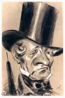 Gabriel et son parapluie, caricature of Gabriel de Lurieu c. 1850 by Nadar