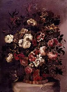 Gabriel de la Corte (1648 โ 6 August 1694) was a Spanish painter specializing in the painting of vases, baskets, garlands and signboards, that he had learned to paint without help of any teacher. Although he was a prolific artist he had little success and lived in poverty.[1] In this context Gabriel was selling his works "on account of the necessity", at a very low price, and some of the Madrid painters of that time charged him with the job of helping them in their minor works.