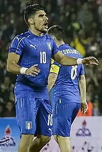 Gori recovered from knee surgery in time to be called up to the Italian team for the 2011 FIFA Beach Soccer World Cup in Ravenna.[4] Subsequently, Gori was the joint second top scorer of the 2015 World Cup[6] and helped Italy win the gold medal at that year's Mediterranean Beach Games,[4] Italy's first major honour since 2005.[7] In 2016, Gori was voted as one of the three best players in the world at the annual Beach Soccer Stars awards[8] and won the Pallone Azzurro (Blue Ball) award for best Italian player of the year bestowed by the Italian Football Federation.[9] His biggest individual accolade came six months later at the 2017 World Cup, where he won the Golden Boot (top scorer) with 17 goals[10] and his 12 goals during the 2018 EBSL season helped Italy secure their first European crown in 13 years, ending 2018 on the verge of 200 goals for Gli Azzurri.[7] A year later, Gori was once again named one of the world's best three players and named amongst the dream team for 2019 at the Beach Soccer Stars awards[8] and ended the season with a silver medal at the 2019 World Cup, winning the Golden Boot once again, the first player to win consecutive top scorer awards since Madjer in 2005 and 2006.[11] He was also named as one of the tournament's top ten best players, out of the 192 participants.[12]