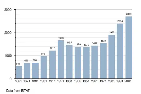 - ↑ "Popolazione Residente al 1° Gennaio 2018". Italian National Institute of Statistics. Retrieved 16 March 2019.