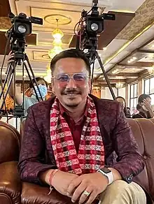Gagit Bista[4][5] is a Nepali actor.[6] He started his acting career from a feature film and his debut movie is 'Mayaz Bar'. In last 15 years of his career, he has worked as an actor in more than 20 movies. Mayaz Bar, love you baba[7] and love forever are some of his Movies. He worked on numerous music video.[8] Sustari Sustari, Man Changa bho, Bedhana ko Bhel,[9] Deurali bhake hajura, and Jaba ma eklai hunchu sajhama are the some of them.