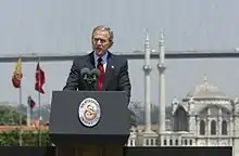 Galatasaray University (Turkish: Galatasaray Üniversitesi, French: Université Galatasaray) is a Turkish university established in Istanbul, Turkey in 1992, following an agreement signed in the presence of President François Mitterrand of France and President Turgut Özal of Turkey during a ceremony at Galatasaray High School, the mother school of the university. Turkey's Ambassador to France, Coşkun Kırca, played an important role in organizing the agreement. Galatasaray University is one of the most important members of the Galatasaray Community as Galatasaray High School and Galatasaray Sports Club, and is widely regarded as one of the most prestigious and notable universities in Turkey.
