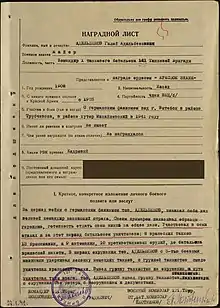 - ↑ Connections of the Red Army during the Great Patriotic War, commander Adilbekov GA