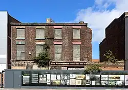 29 Pembroke Place was one of a terrace of Georgian town houses built in 1820. In 1907 it was purchased by Percy Galkoff, a Jewish emigré from Poland, who had it reconstructed as a kosher butcher's shop. In 1933 he added the tiled shop front which is a feature of the building The business was run by him and his family until 1979, when it was sold to Liverpool City Council. The building changed hands several times, becoming derelict despite remedial work, and afflicted throughout by planning blight.[3] The current owners, Liverpool School of Tropical Medicine, have co-operated with the Museum of Liverpool Life to preserve the frontage of No.29 and the neighbouring Grade II listed court dwellings, in their “Secret Life of Liverpool” project,[4][5] and the frontage is now on display at the museum.