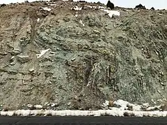 ![]() Gallatin Formation with fault on the south side of the Big Horn Mountains | |