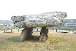 Ganghwa Island is rich in dolmen, and they have been designated a World Heritage Site.[1] There are about 150 dolmen on the island. Their distribution shows that these dolmen were closely related to fishing in the Bronze Age, although they are now separated from the sea.[2] They are located on the slopes of mountains and are thus higher in elevation than their counterparts. It is believed, but not proved, that the Ganghwa dolmen are the earliest Korean ones made, because the designs of the dolmen in Bugeun-ri and Gocheon-ri are resemble those in Ganghwa.[3]
