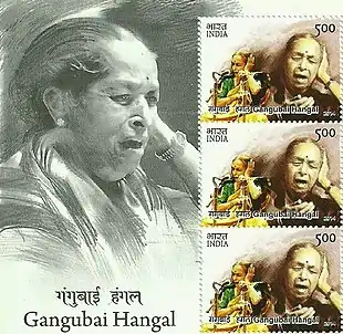 Gangubai Hangal (13 March 1913 – 21 July 2009) was an Indian singer of the khayal genre of Hindustani classical music from Karnataka, who was known for her deep and powerful voice.[6] Hangal belonged to the Kirana gharana.[7]