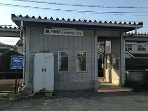 The station was opened as Nata Station (奈多駅, Nata-eki) on 1 January 1904 by the private Hakata Bay Railway as an intermediate station on a track it laid between Saitozaki and Sue. On 19 September 1942, the company, now renamed the Hakata Bay Railway and Steamship Company, with a few other companies, merged into the Kyushu Electric Tramway. Three days later, the new conglomerate, which had assumed control of the station, became the Nishi-Nippon Railroad (Nishitetsu). On 1 May 1944, Nishitetsu's track from Saitozaki to Sue and the later extensions to Shinbaru and Umi were nationalized. Japanese Government Railways (JGR) took over control of the station. The station was renamed Gannosu and the track which served it was designated the Kashii Line. With the privatization of Japanese National Railways (JNR), the successor of JGR, on 1 April 1987, JR Kyushu took over control of the station. The old name Nata was given to the next station on the line which opened in 1960.[5][6]