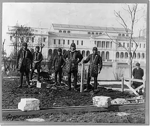 Jackson Park's Japanese gardens were originally created by the government of Japan for the 1893 World's Columbian Exposition. The grounds included a garden and Hō-Ō-Den (鳳凰殿 Phoenix Temple) as a pavilion for the exposition.[1] The pavilion was based on the Hō-Ō-Dō (鳳凰堂 "Phoenix Hall") of the Byōdō Temple (平等院, "Temple of Equality") in Kyoto. The phoenix emblem was a reference to Chicago rising like the mythical firebird from the ashes of the Great Chicago Fire of 1871. After the 1893 Fair, most of the Fair structures were burned or torn down, but the garden and the Ho-O Den Pavilion remained intact.