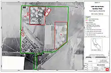 ![]() Aerial photo of the remains of Gardner AAF, 2006. The largest remaining recognizable element of the airfield is the 1,800' concrete and asphalt ramp area, which runs diagonally NW/SE in the photo. | |
