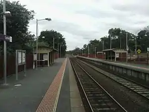 ![]() Westbound view from Platform 1 in January 2015 | ||||||||||||||||