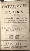12. A Catalogue of Books in History, Divinity, Law, Arts and Sciences, and the Several Parts of Polite Literature; to be Sold by Garrat Noel, Bookseller in Dock-Street. New-York: Printed by H. Gaine, in Queen-Street, between the Fly and Meal-Markets, 1755