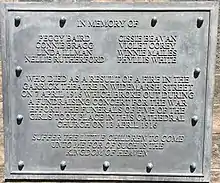Local residents campaigned for a "lasting memorial" near the site.[3][6] This campaign inspired Hereford Cathedral and architect Robert Kilgour to commission a memorial plaque, cast in lead. The commission was accepted by Carey Lead Ltd. and installation was carried out on 15 March 2018. The plaque is on permanent display below the SAS memorial window in the cathedral's Lady Arbour Cloister.[7]