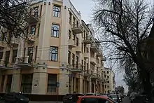 Starting from Beregovaya Street, Gazetny Lane almost at once introduces a cultural heritage site to a passer-by – the mansion of Pyotr Nikolayevich Wrangel, one of the main military leaders of the White Army during the Russian Civil War and the Commander-in-Chief of the Russian army in Crimea and Poland, who also participated in the Russo–Japanese War and the World War I. The house was built in 1885 upon the project of Nikolay Alexandrovich Doroshenko.[2] The frontage is notable for lavish decoration and partly extant stucco work. Unfortunately, today the house of Wranghel remains in a neglected state. The dilapidated condition of the building was compounded by a barbarous act in the beginning of 2017.[3]