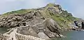 Gaztelugatxe is an islet on the coast of Biscay belonging to the municipality of Bermeo, Basque Country (Spain). It is connected to the mainland by a man-made bridge. On top of the island stands a hermitage (named Gaztelugatxeko Doniene in Basque; San Juan de Gaztelugatxe in Spanish), dedicated to John the Baptist, that dates from the 10th century, although discoveries indicate that the date might be the 9th century. With another small neighboring island, Aketx, they form a protected biotope that extends from the town of Bakio to Cape Matxitxako, on the Bay of Biscay.